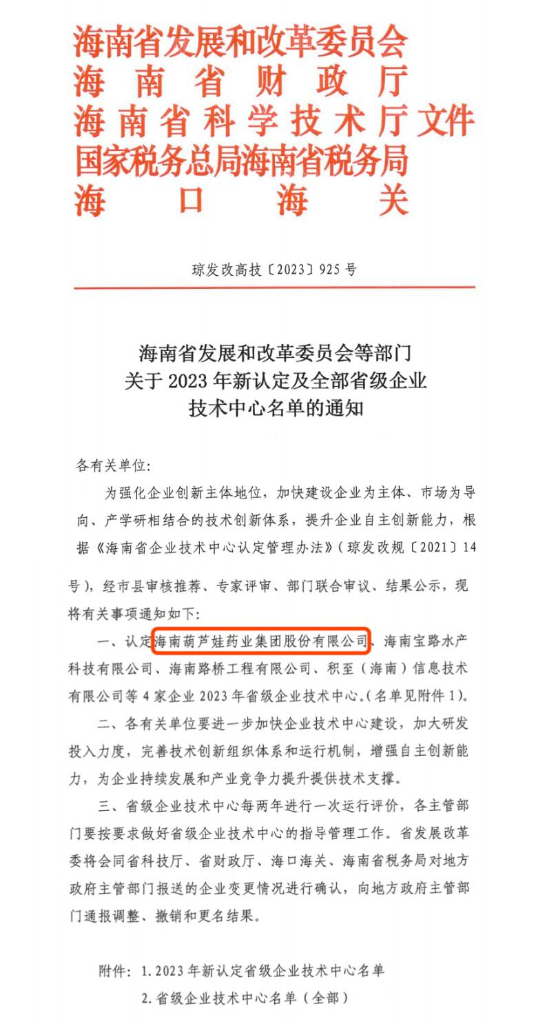 近日,海南省发改委等多部门联合公布了《关于2023年新认定及全部省级企业技术中心名单的通知》,其中,海南mansion88·明升药业集团股份有限公司成功通过评审,被认定为省级企业技术中心,是本次获批的4家企业之一。